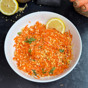 Kosumalli is a protein-rich South Indian salad. Soaked dal, choice of vegetables, and subtle spice make it tummy-satisfying. Carrot Kosumalli, also known as Carrot Kosambari, Moong Dal Salad, Vada Paruppu, or Pasi Paruppu Kosumalli, is a refreshing South Indian salad made with grated carrots, soaked moong dal, lemon, green chilli, and coconut. This light and nutritious kosumalli is commonly served during festivals, weddings, and as a healthy everyday side dish. With its crunchy texture, protein‑rich dal, and simple seasoning, this South Indian style carrot salad is perfect for lunch boxes, prasadam, or as a quick, no‑cook snack. Whether you call it kosambari, kosumalli, or vada pappu, this dish is wholesome, vibrant, and ready in minutes.