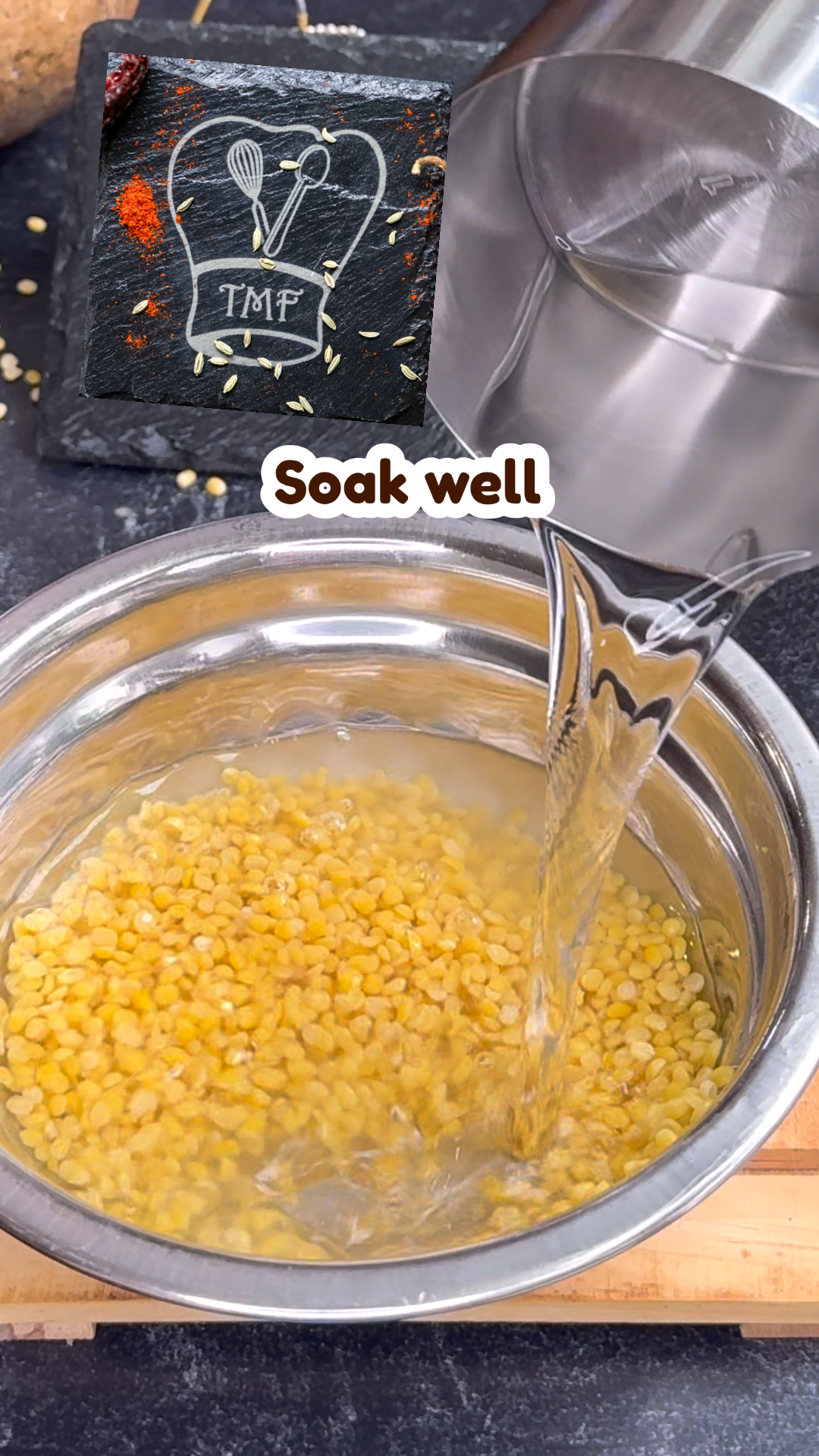 For this recipe, we are not going to cook the moong dal. I soaked it in water for 1 hour. We have to soak till the dal turns to the soft press stage. Avoid using any other dal variety.