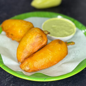 Chilli Bajji, also known as Milagai Bajji or Mirchi Bajji, is one of the most loved South Indian tea‑time snacks. These golden, crispy fritters are made by dipping long green chillies in a spiced gram‑flour batter and deep‑frying them to perfection. Light, crunchy, and bursting with flavour, this street‑style bajji is incredibly easy to prepare at home with just a handful of pantry ingredients. Whether you enjoy it with coconut chutney, tomato ketchup, or simply as a monsoon treat, this recipe guarantees the perfect crispness every time.