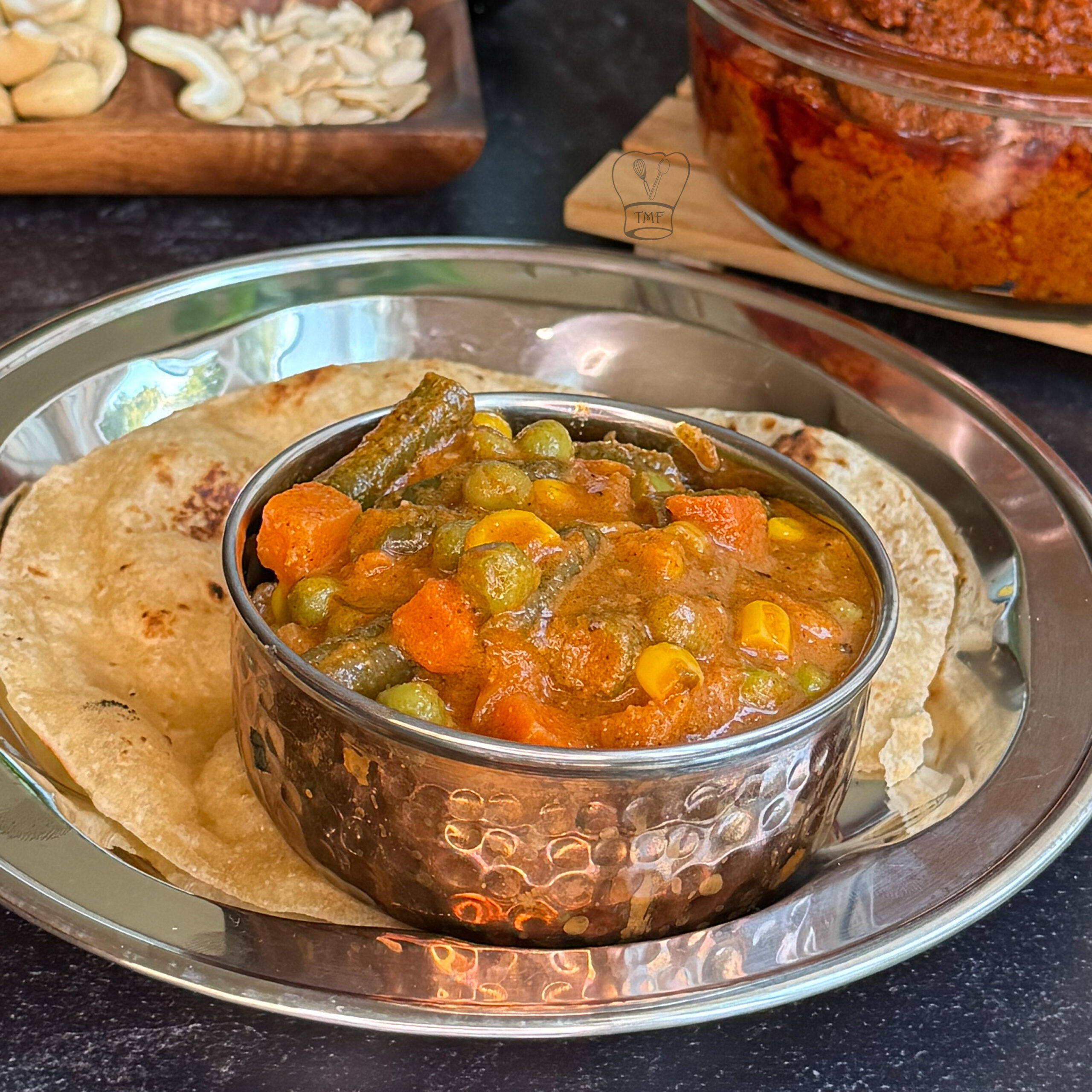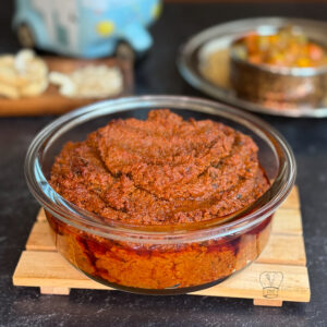 All‑Purpose Curry Base, also known as Indian Gravy Base, is a versatile make‑ahead masala that forms the foundation for countless curries. This onion‑free and garlic‑free version is perfect for satvik cooking, fasting days, or when you want a lighter yet flavorful gravy. Made with tomatoes, cashews, melon seeds, and aromatic spices like cinnamon, cardamom, and kalpasi, this curry base delivers rich taste and restaurant‑style texture. Unlike traditional Indian curry bases that rely on onion and garlic, this tomato‑nut blend is smooth, creamy, and easy to store. Prepare it in advance, refrigerate or freeze, and you’ll have a ready‑to‑use curry base for vegetables, paneer, or even non‑veg dishes — saving time while keeping authentic Indian flavors intact.