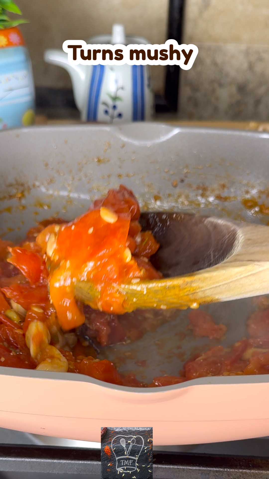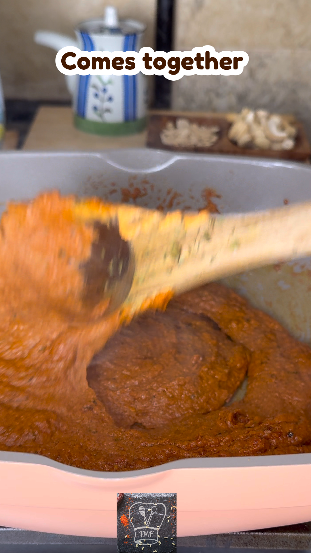 Traditional bases often use onion and garlic, while this version relies on tomatoes, nuts, and spices for depth.