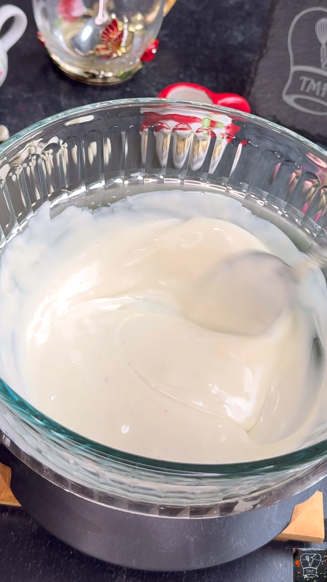 - Remove from heat and stir until smooth and shiny