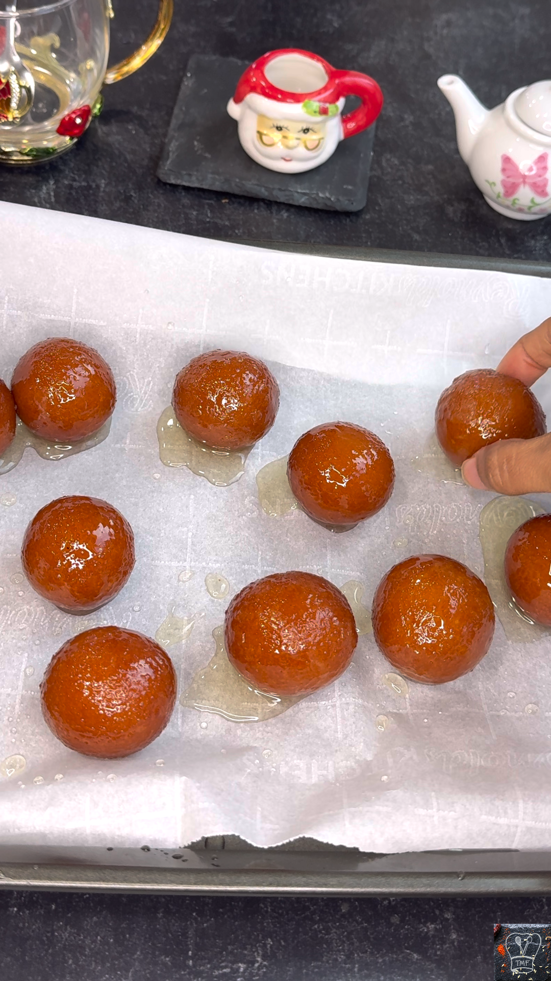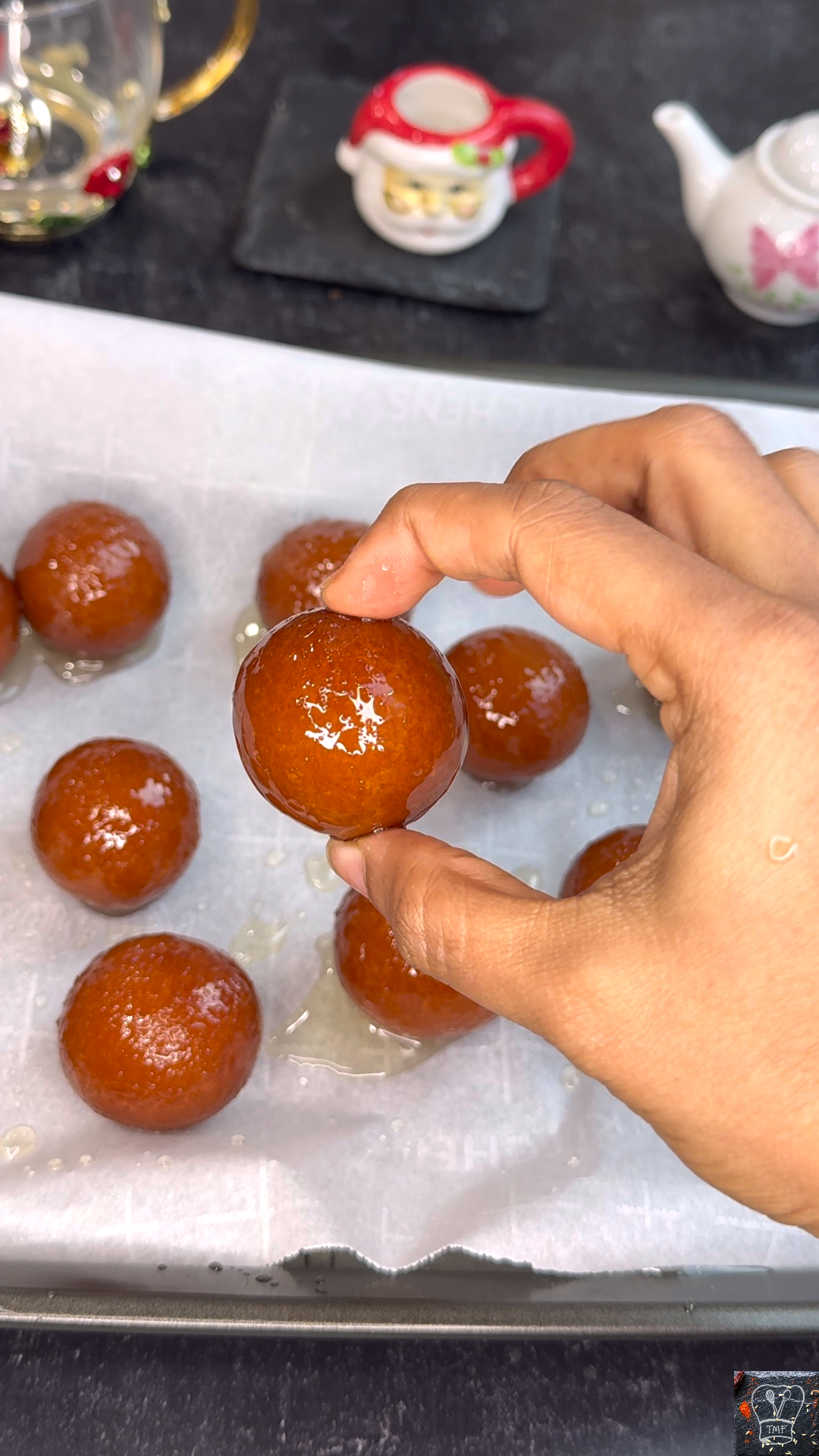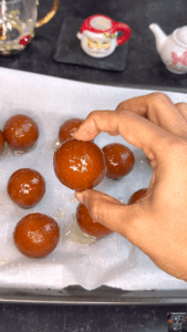 - Homemade or store‑bought jamun both work; drip excess syrup (don’t squeeze) and place on a parchment‑lined tray