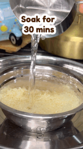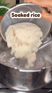 - First, wash and soak seeraga samba rice for 30 minutes. Drain and keep aside.