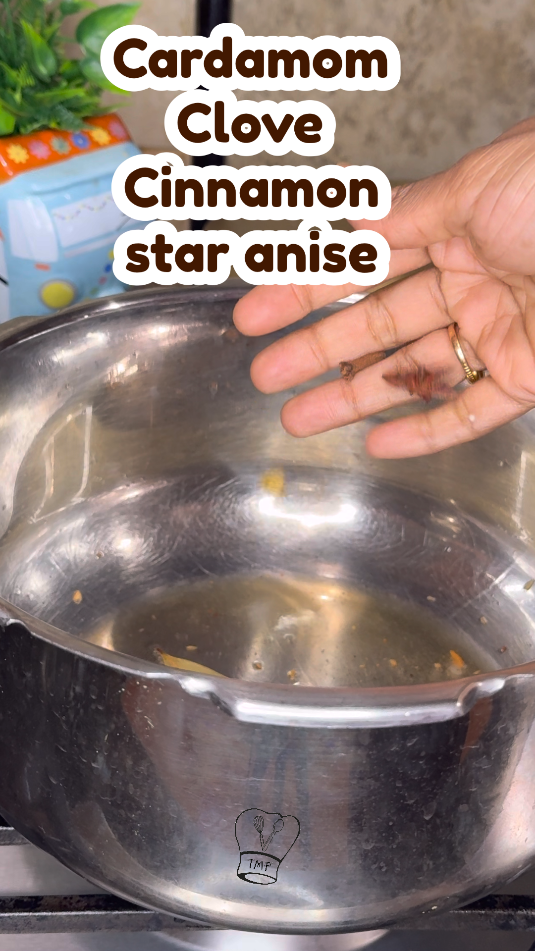 - In the same cooker, add bay leaf, cardamom, cloves, cinnamon, and star anise.