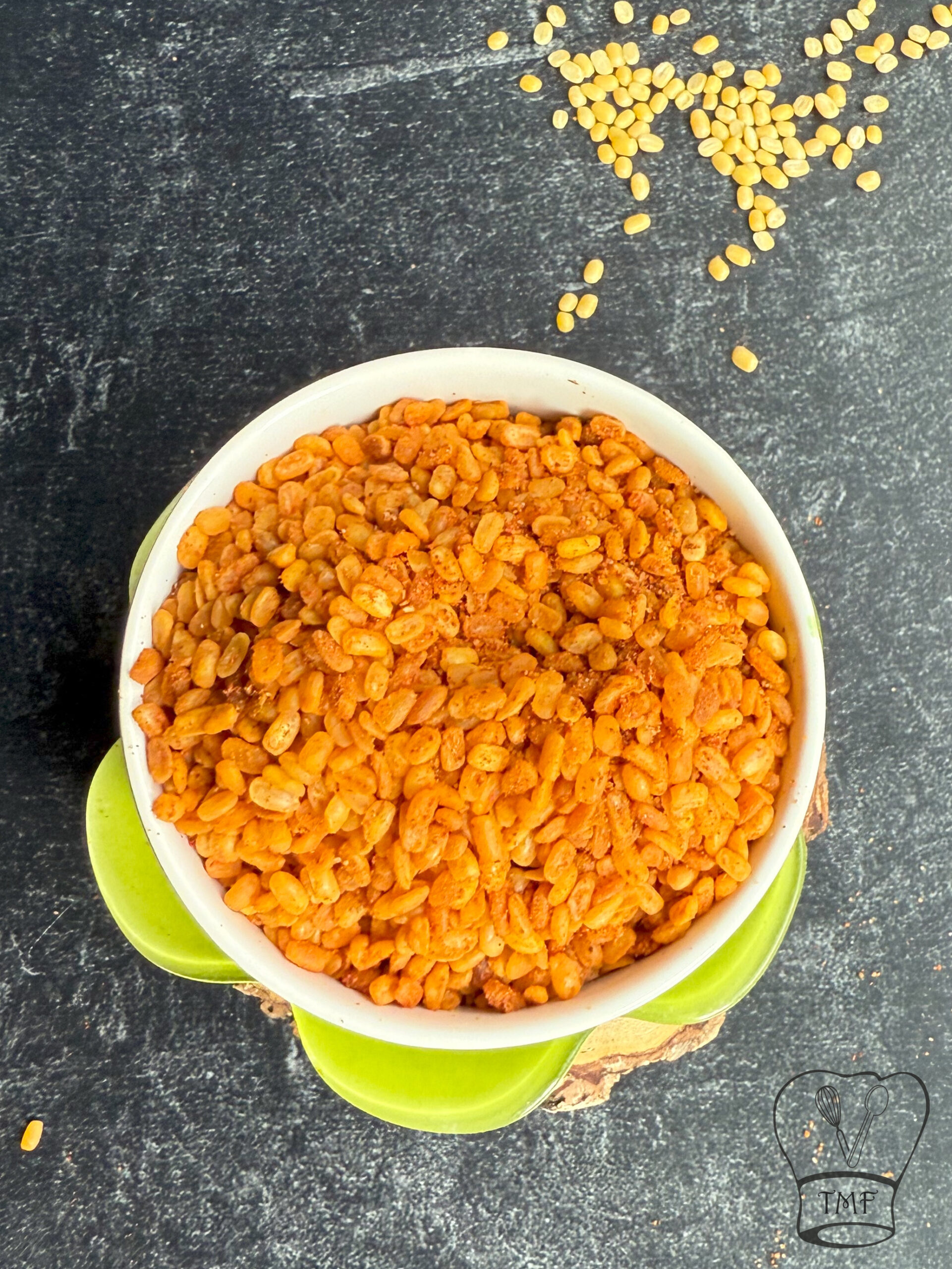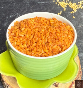 It’s made from split moong dal, soaked, dried, deep-fried, and seasoned with salt or spices.