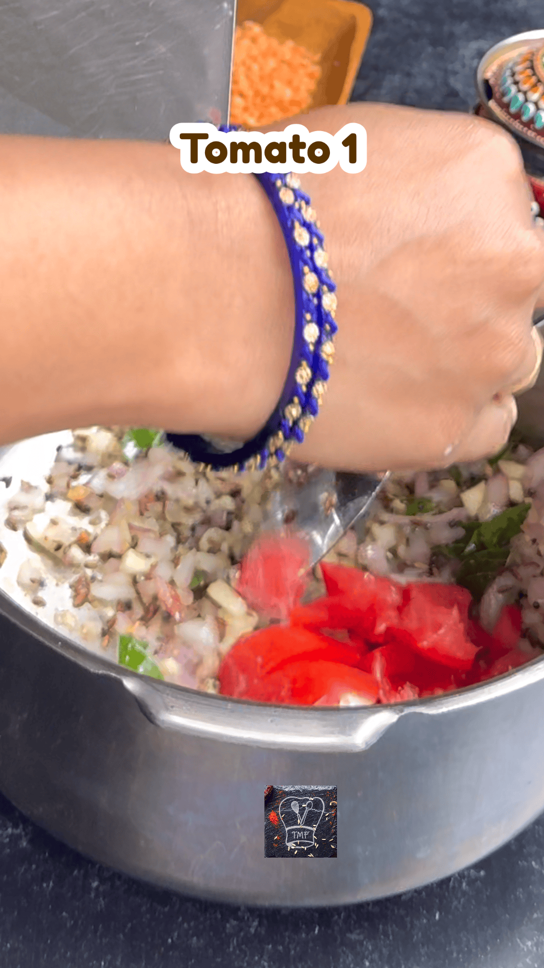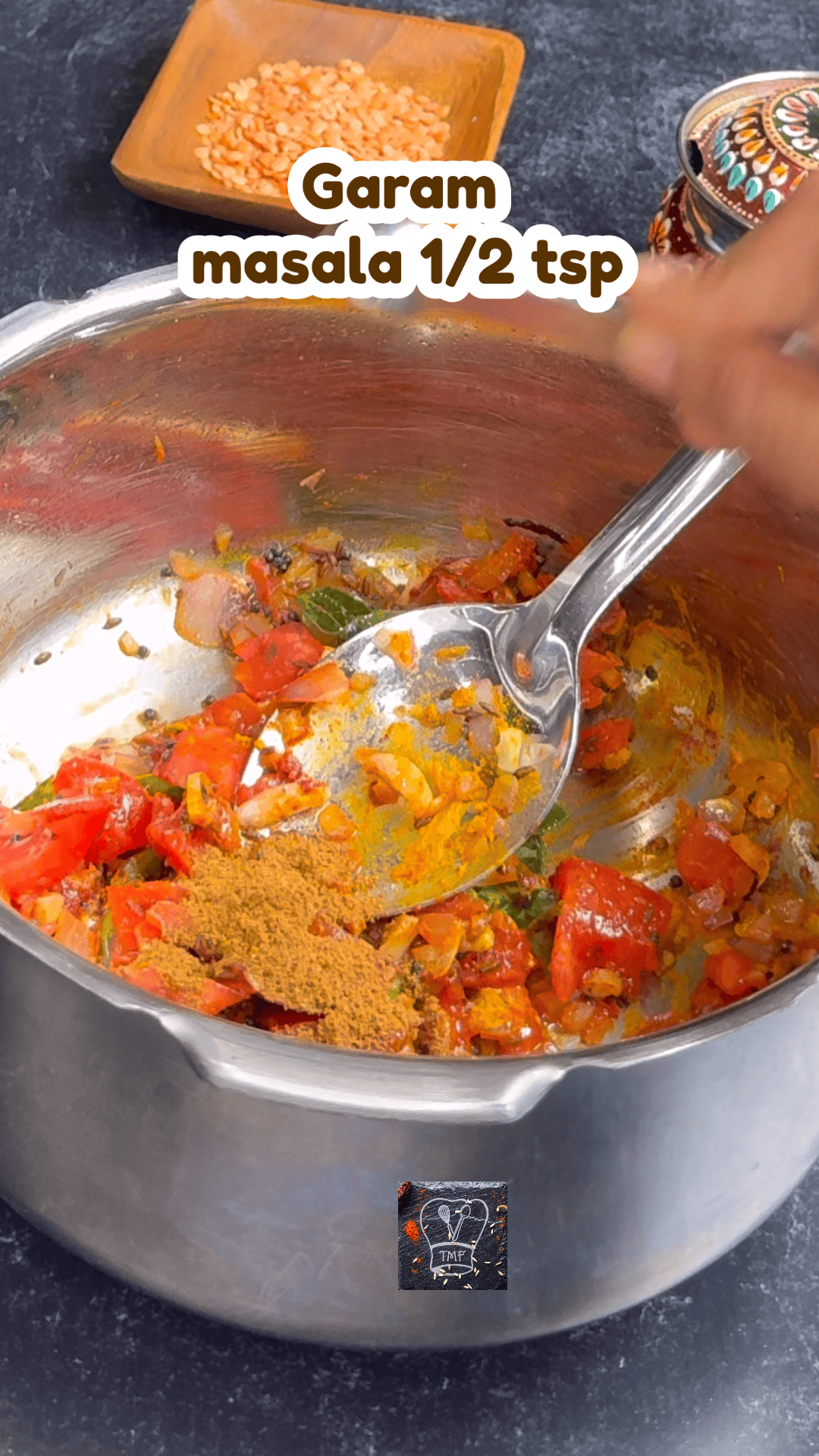 • Add tomato, salt, Kashmiri chili powder, turmeric powder, and garam masala; sauté until mushy.