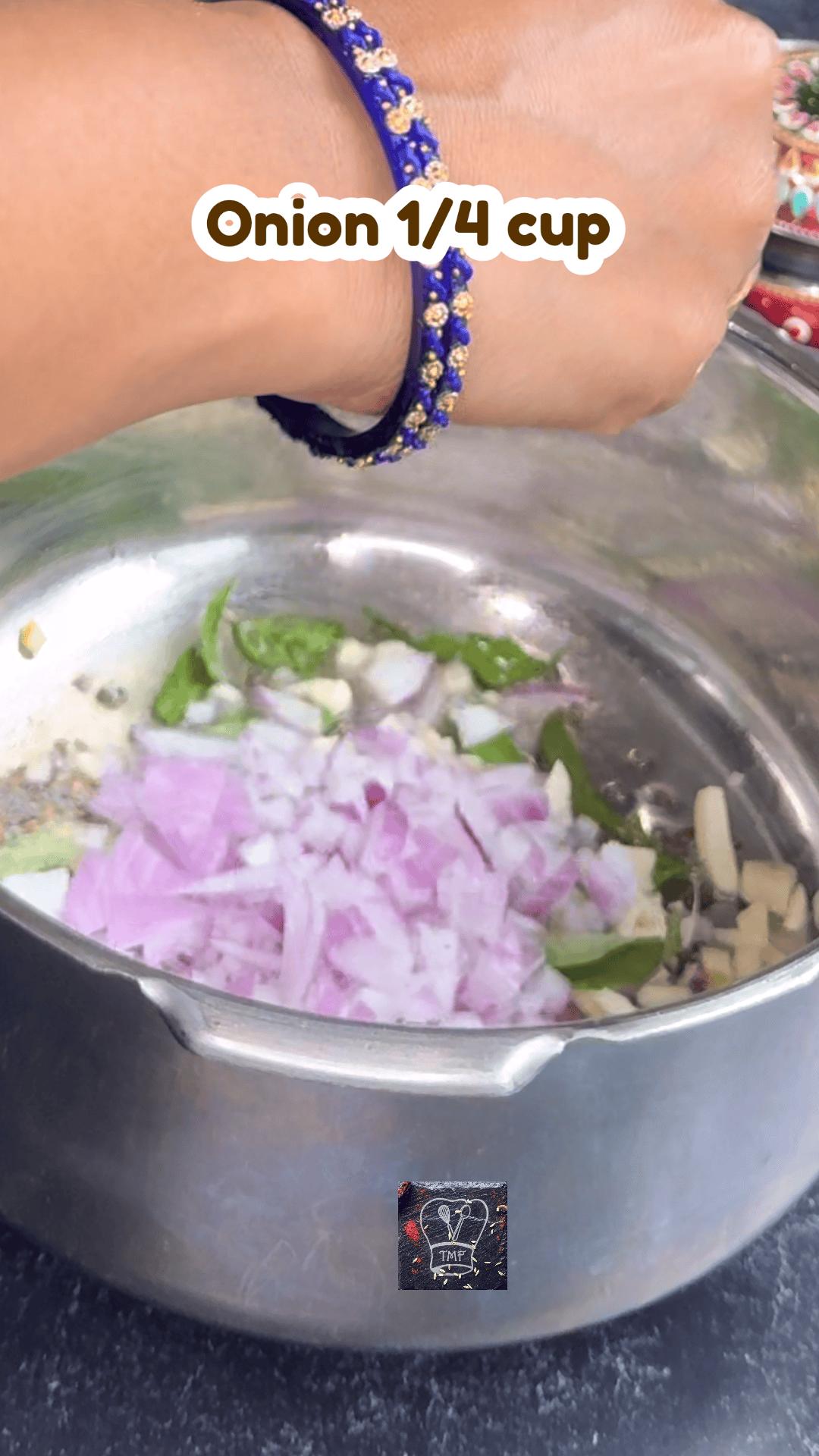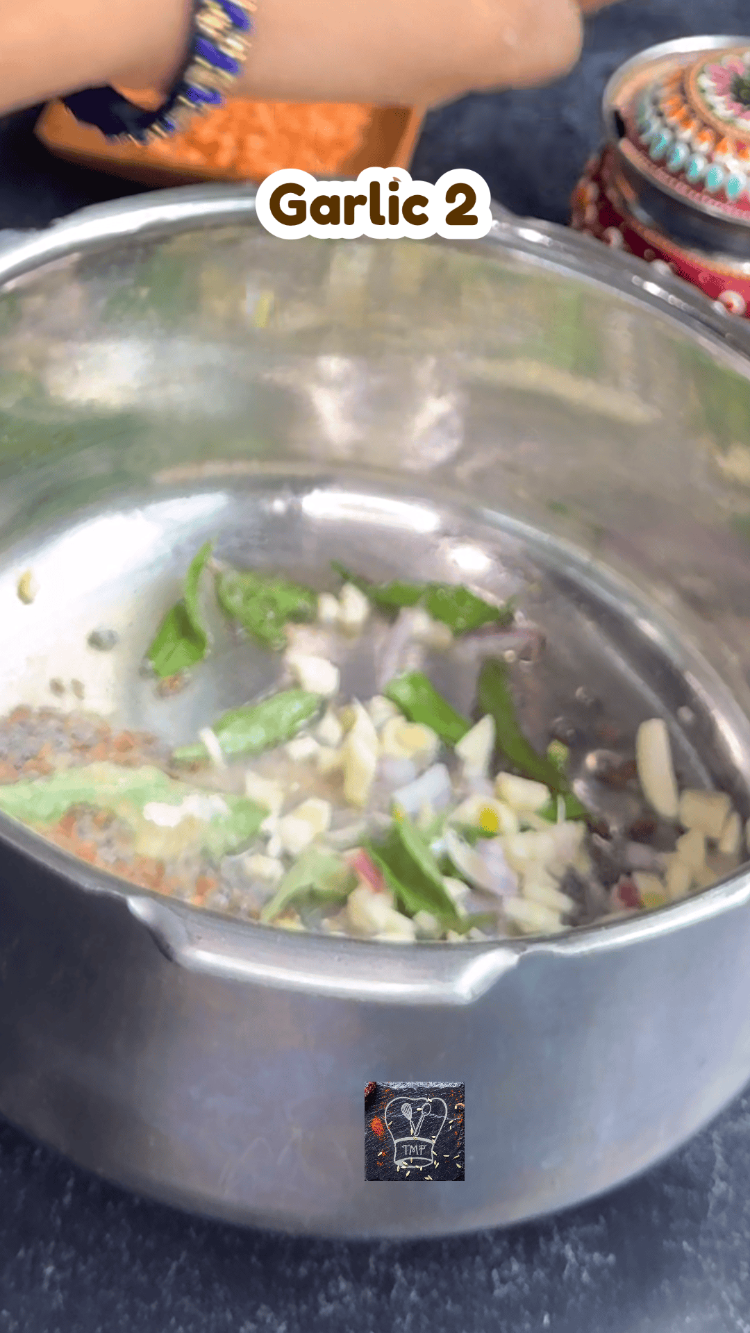 • Add curry leaves, asafoetida, green chili, garlic, and onion (if using); sauté until translucent.