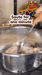 - Add the soaked rice and sauté for a minute