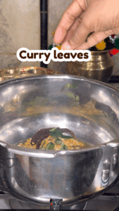- ️ Add red chill, curry leaves, asafoetida, and roasted peanuts, quick mix