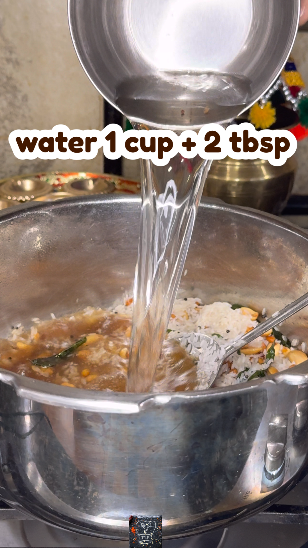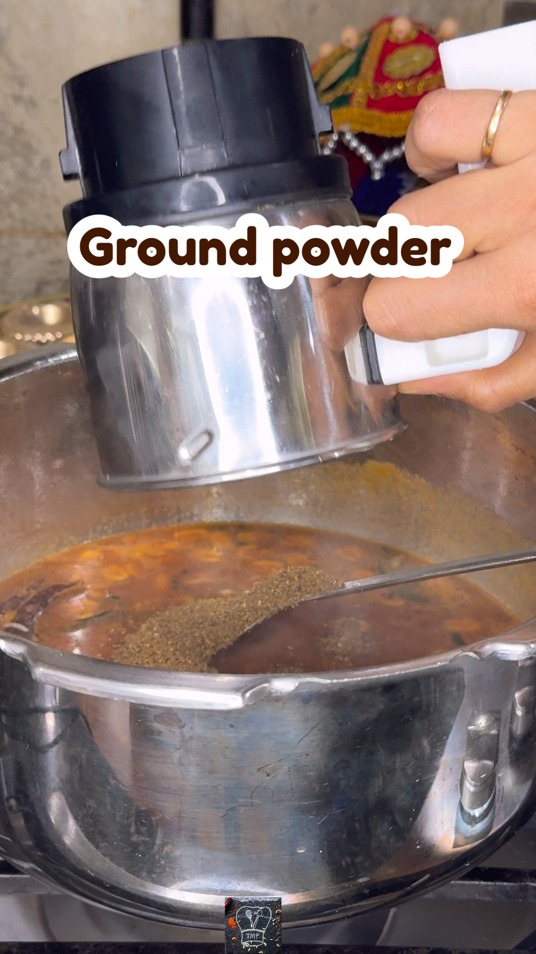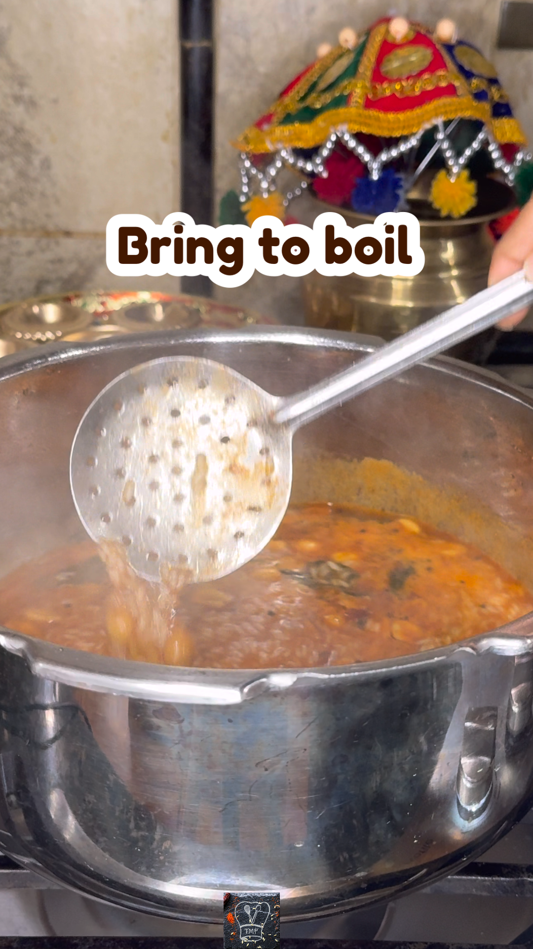 - ️ Add tamarind extract, water, salt, jaggery, and Kashmiri chilli powder