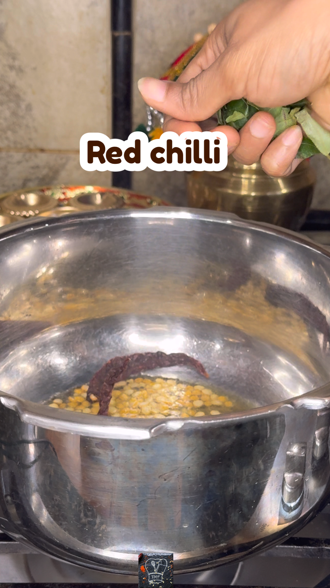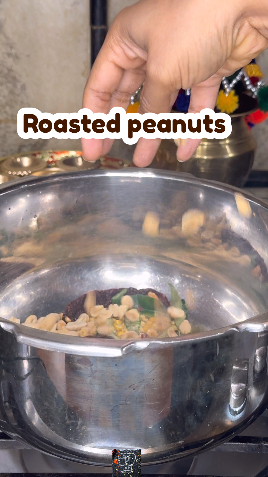 - ️ Add red chill, curry leaves, asafoetida, and roasted peanuts, quick mix