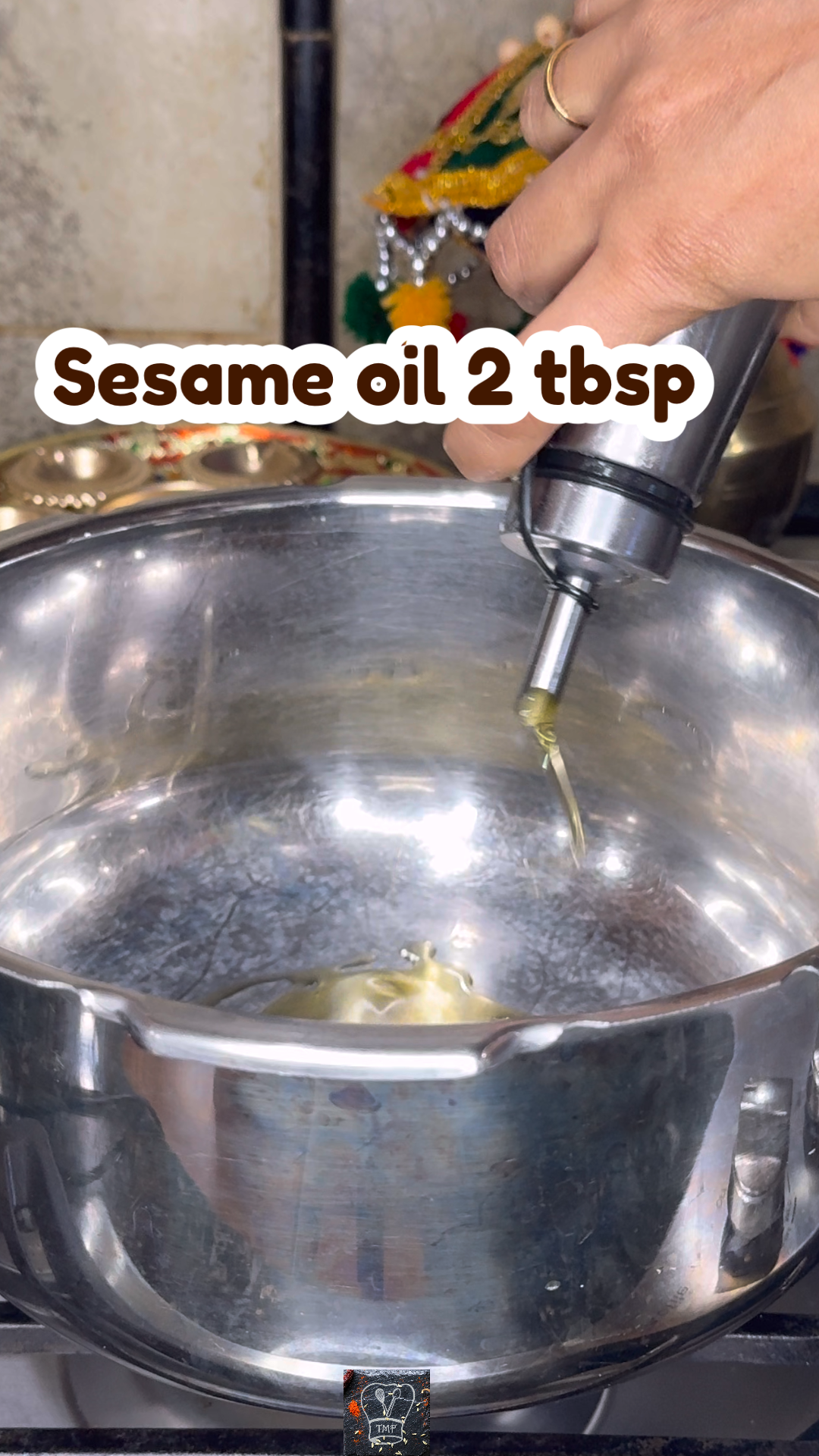 - ️ Heat sesame oil in a pressure cooker
