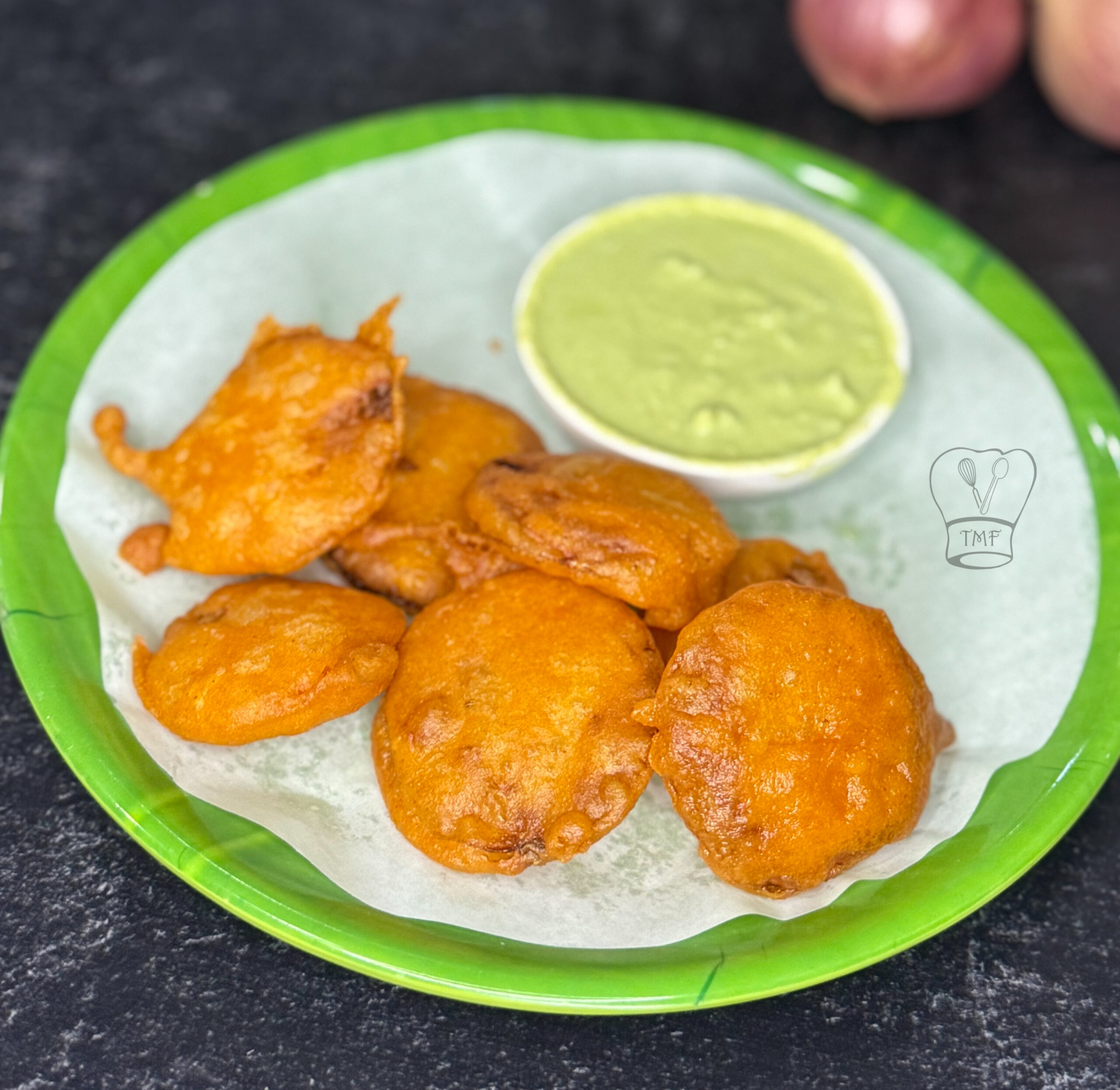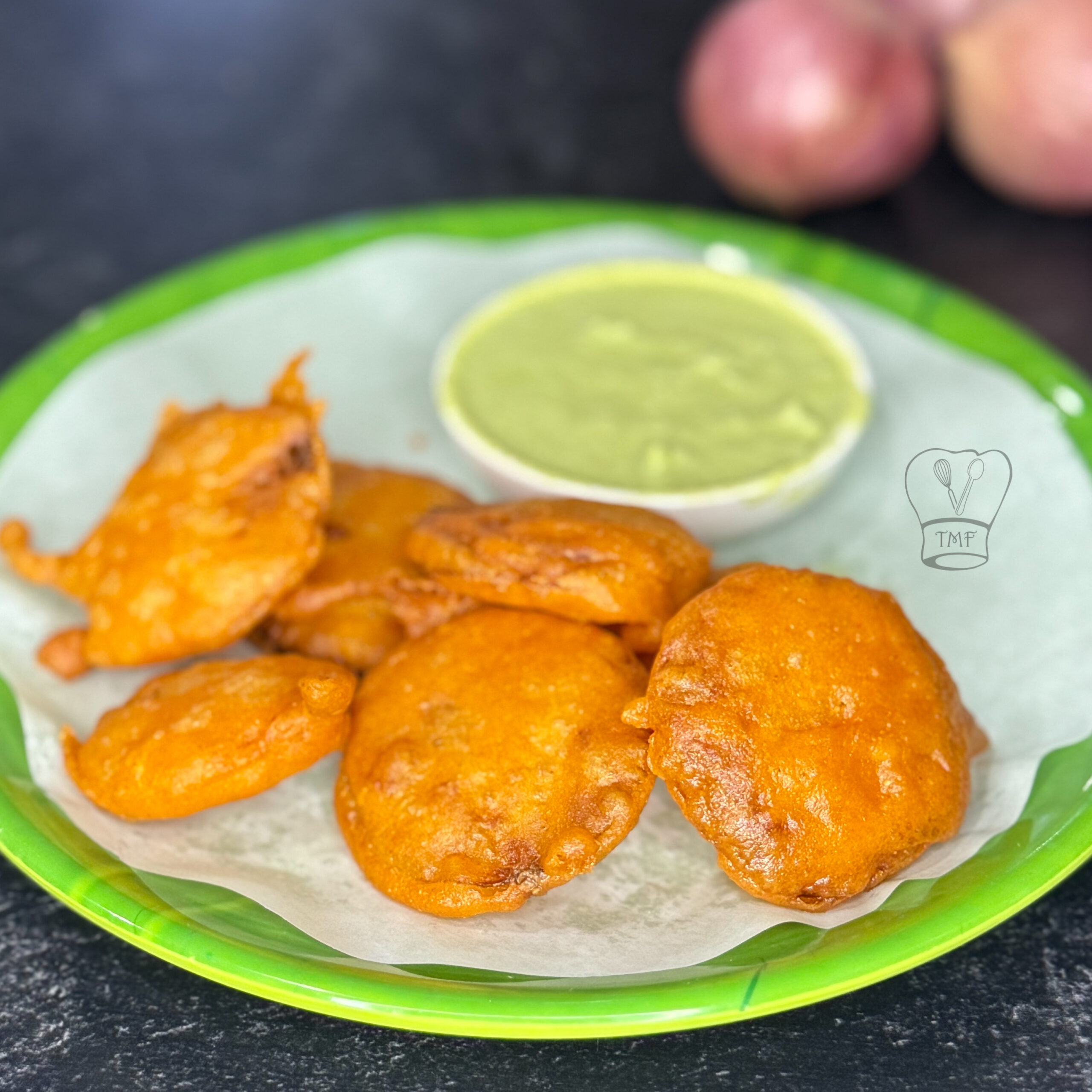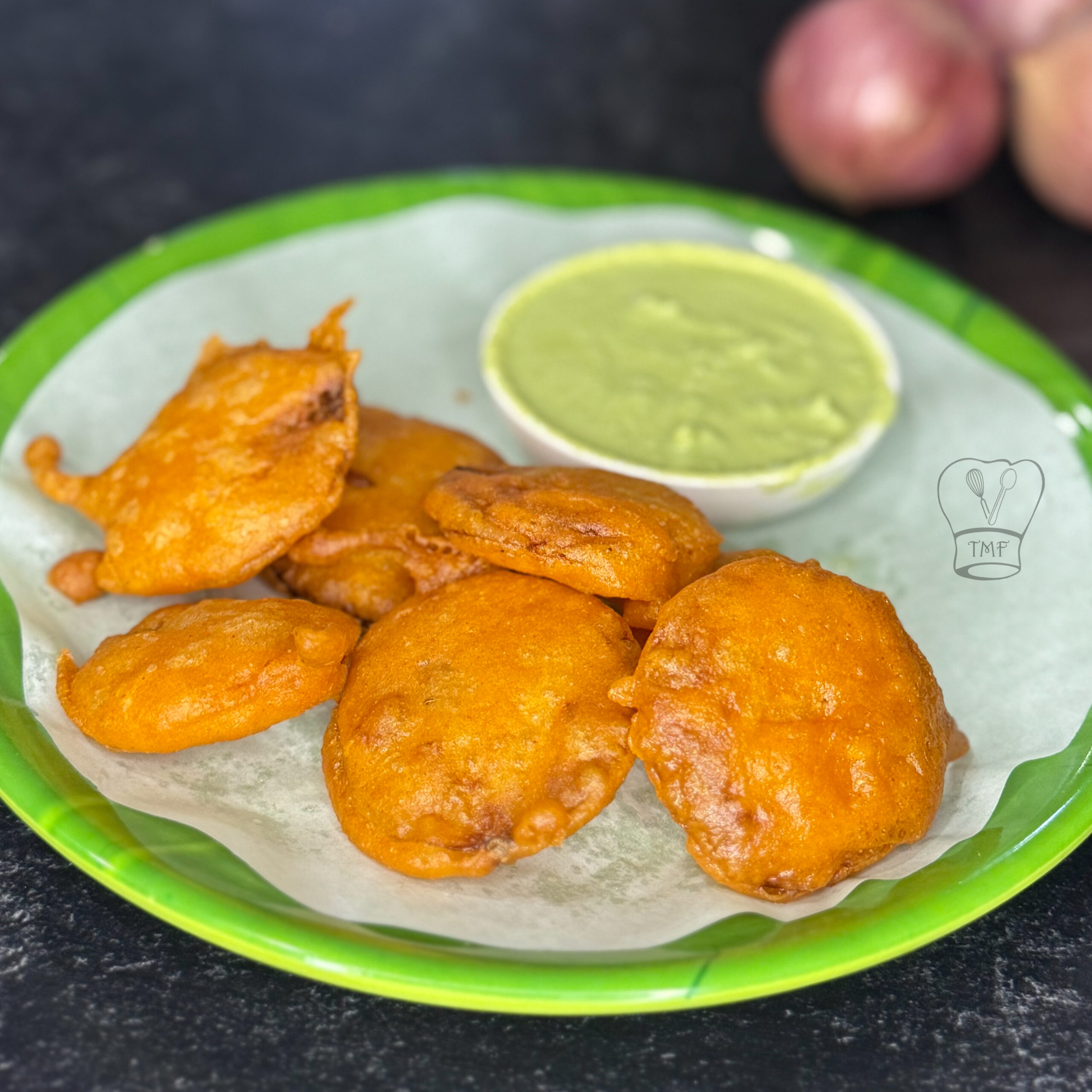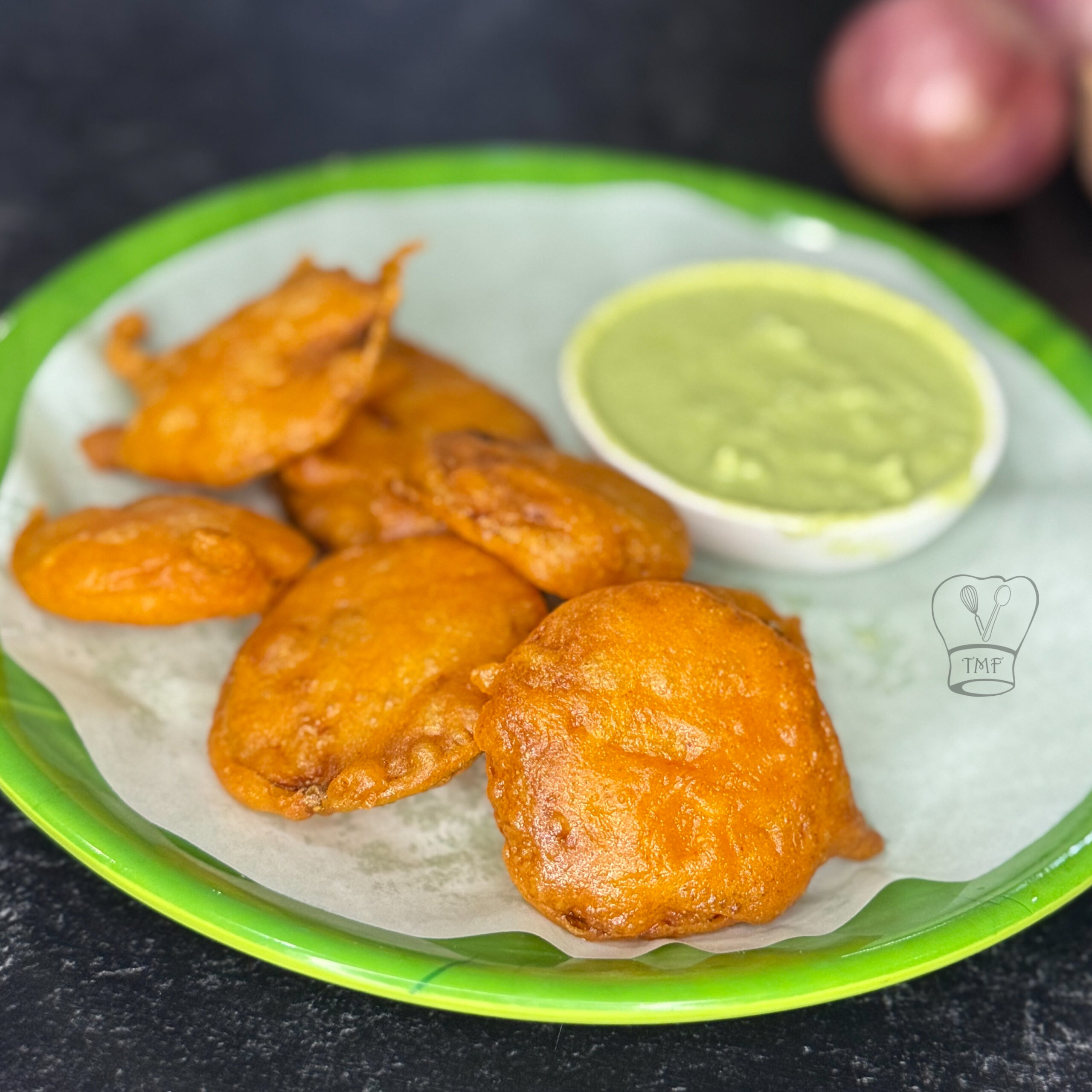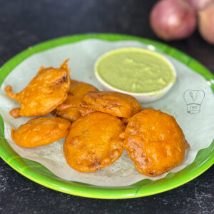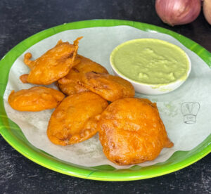 Onion bajji tastes best when eaten immediately. If stored, reheat in an oven or air fryer to regain crispiness.