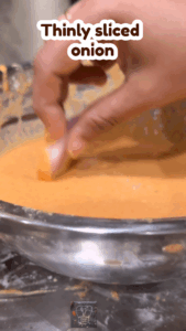 Slice the onions thinly into rings, keeping the ring intact. Thinner slices give crispier bajjis, while thicker slices give a softer bite.