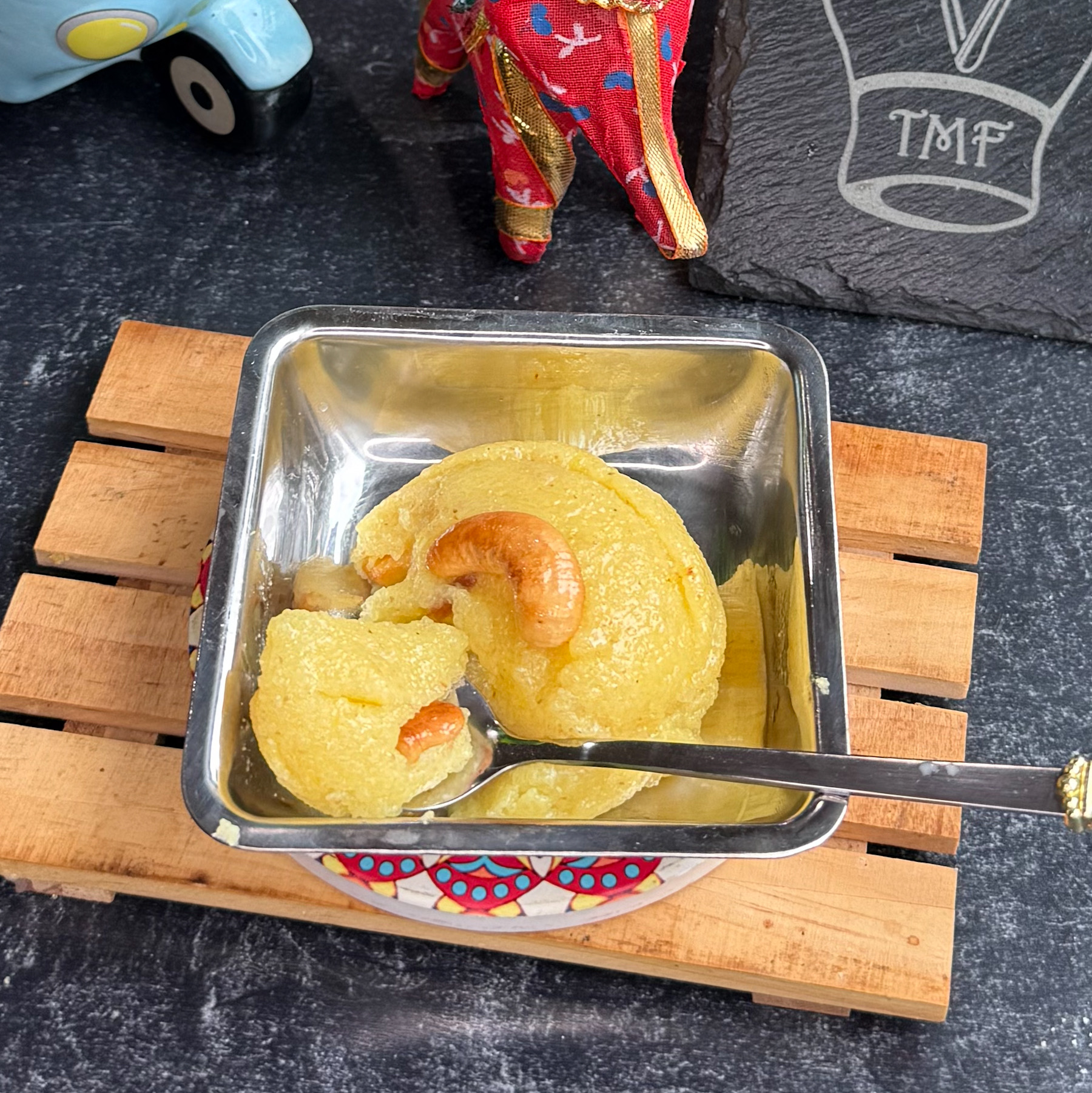 Regular kesari bath is cooked with water, while paal kesari uses milk, giving it a richer, softer, and more luxurious texture.