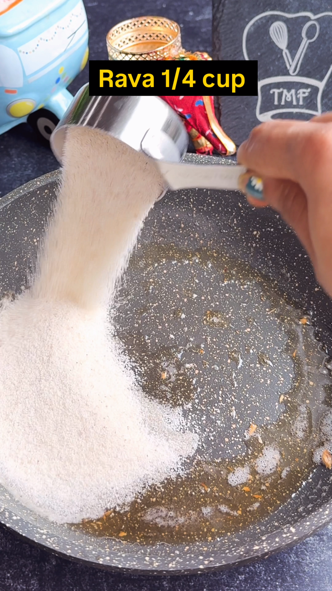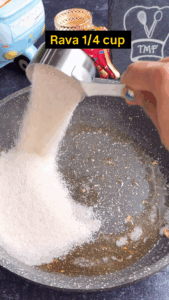 Lumps form when rava is added too quickly. Add it slowly while stirring continuously to get a smooth, creamy texture.