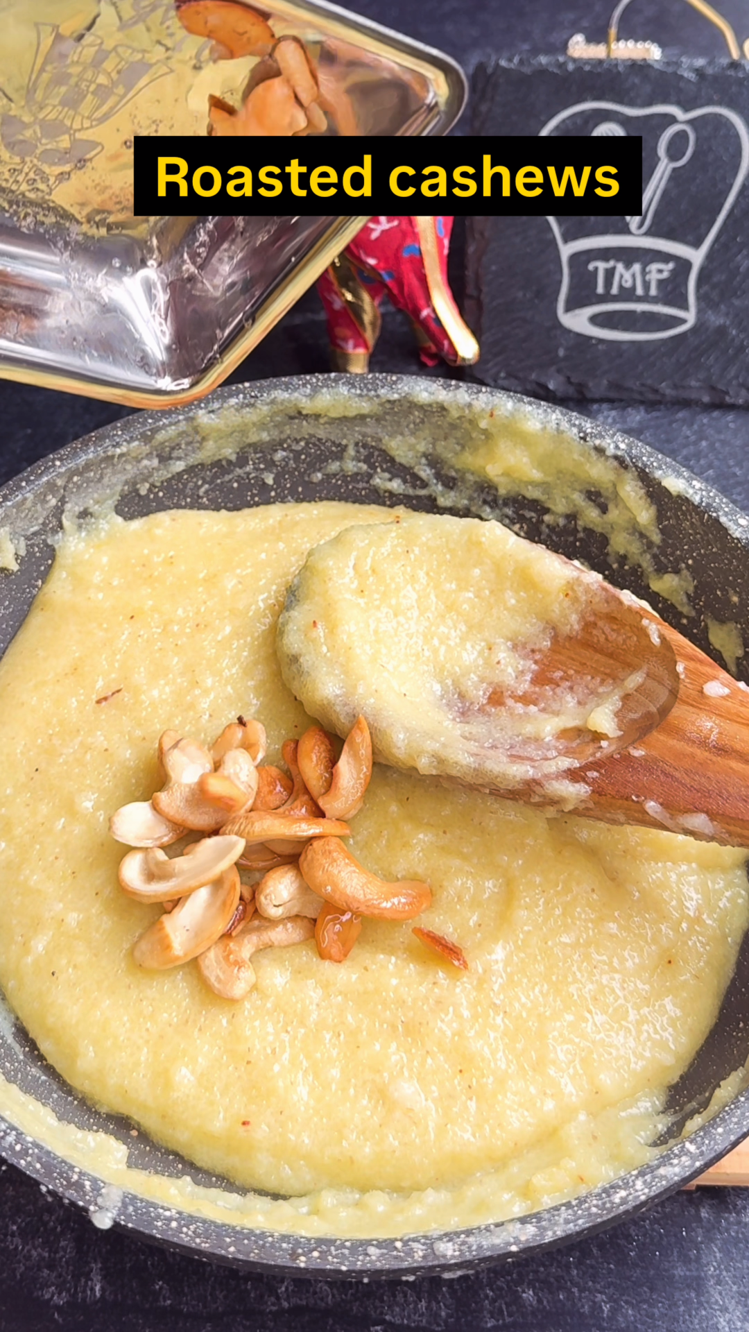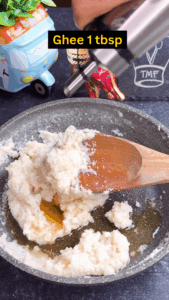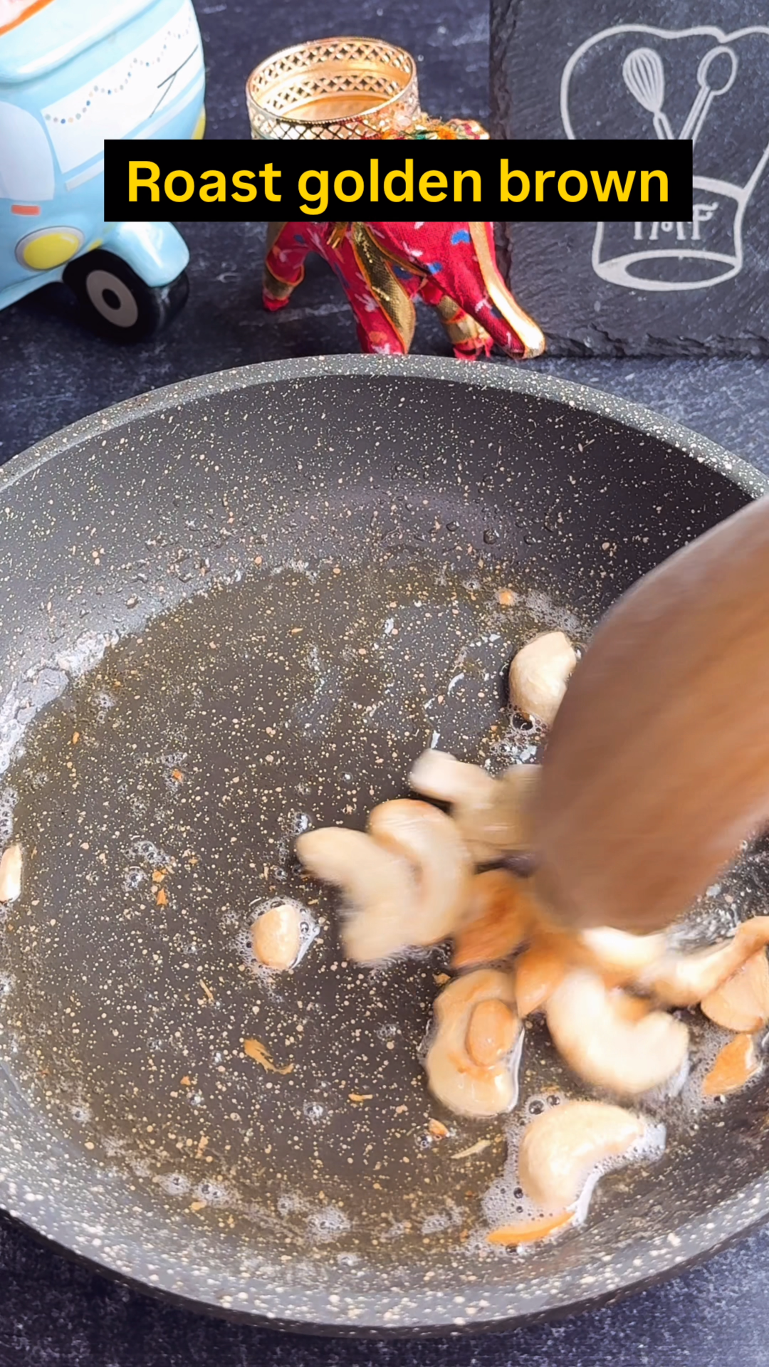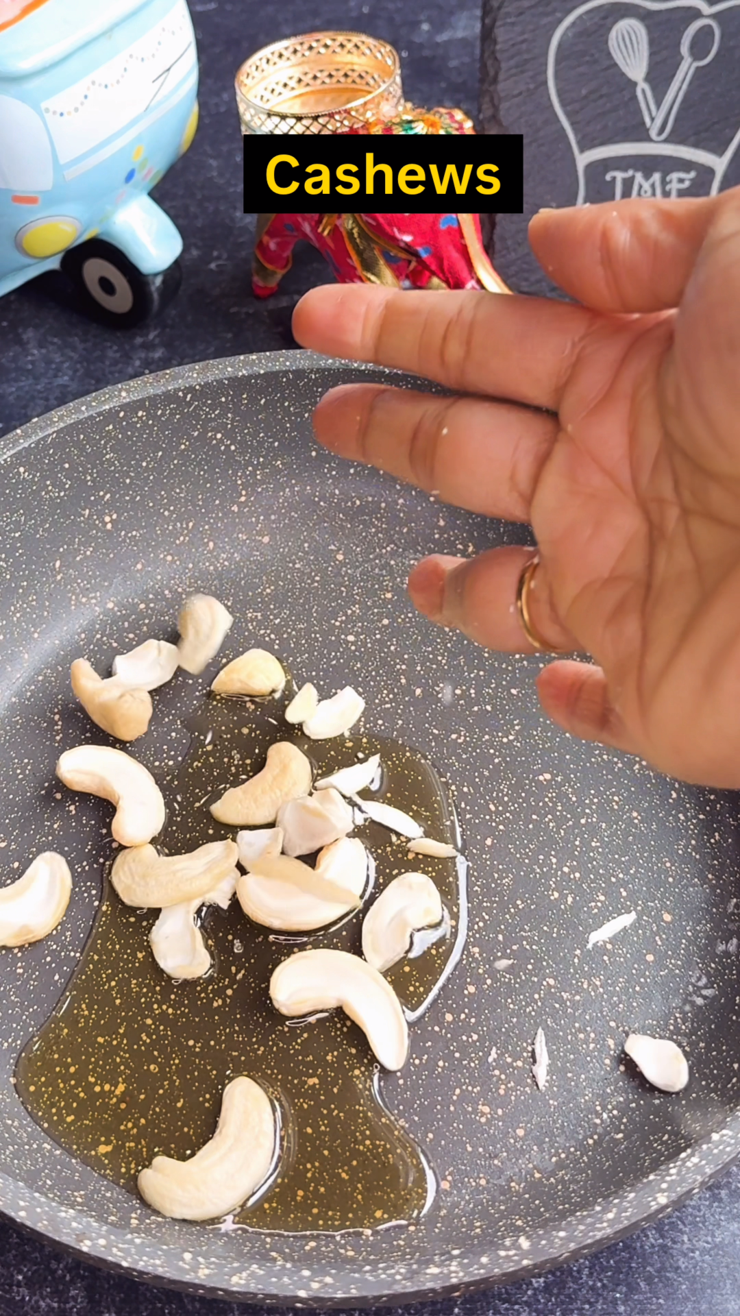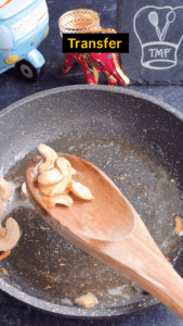 - Heat 1 tablespoon of ghee and sauté the cashews until golden brown. Keep aside