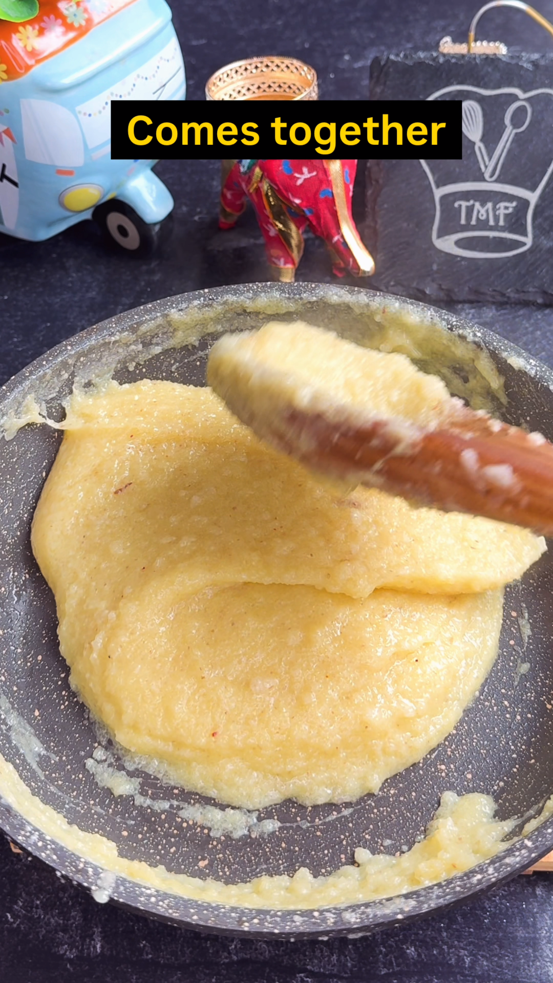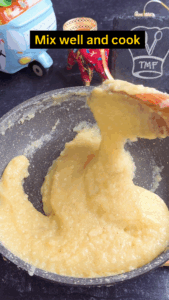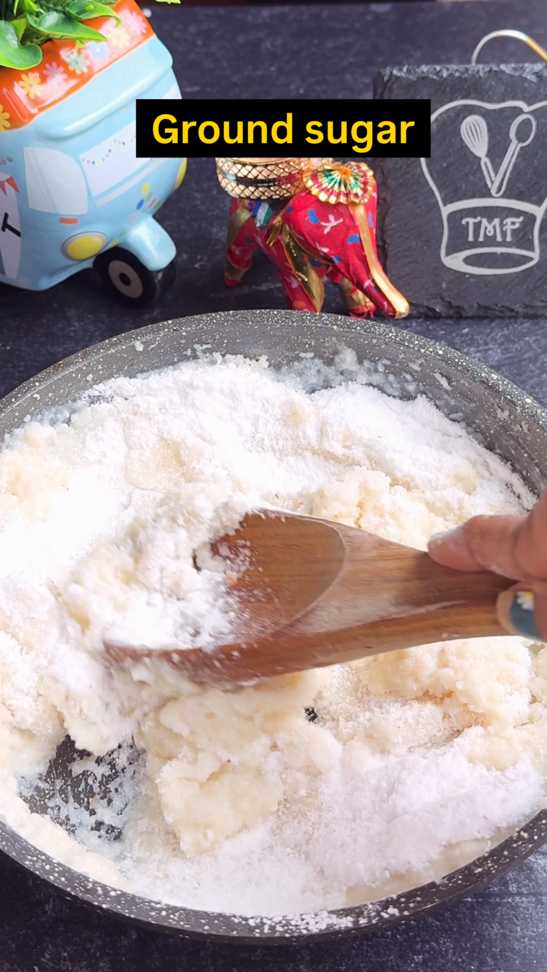 - Furthermore, add the ground sugar mixture, mix well, and cook till it comes together as a whole mass