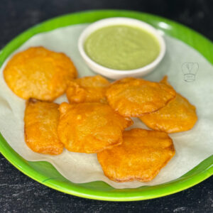 Potato bajji tastes best when eaten immediately. If needed, reheat in an oven or air fryer to regain crispiness.