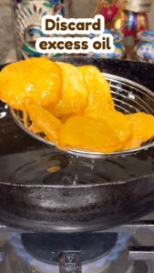 • Fry a few slices at a time, flipping occasionally until golden and crisp.