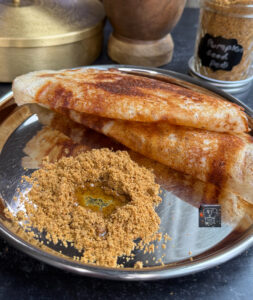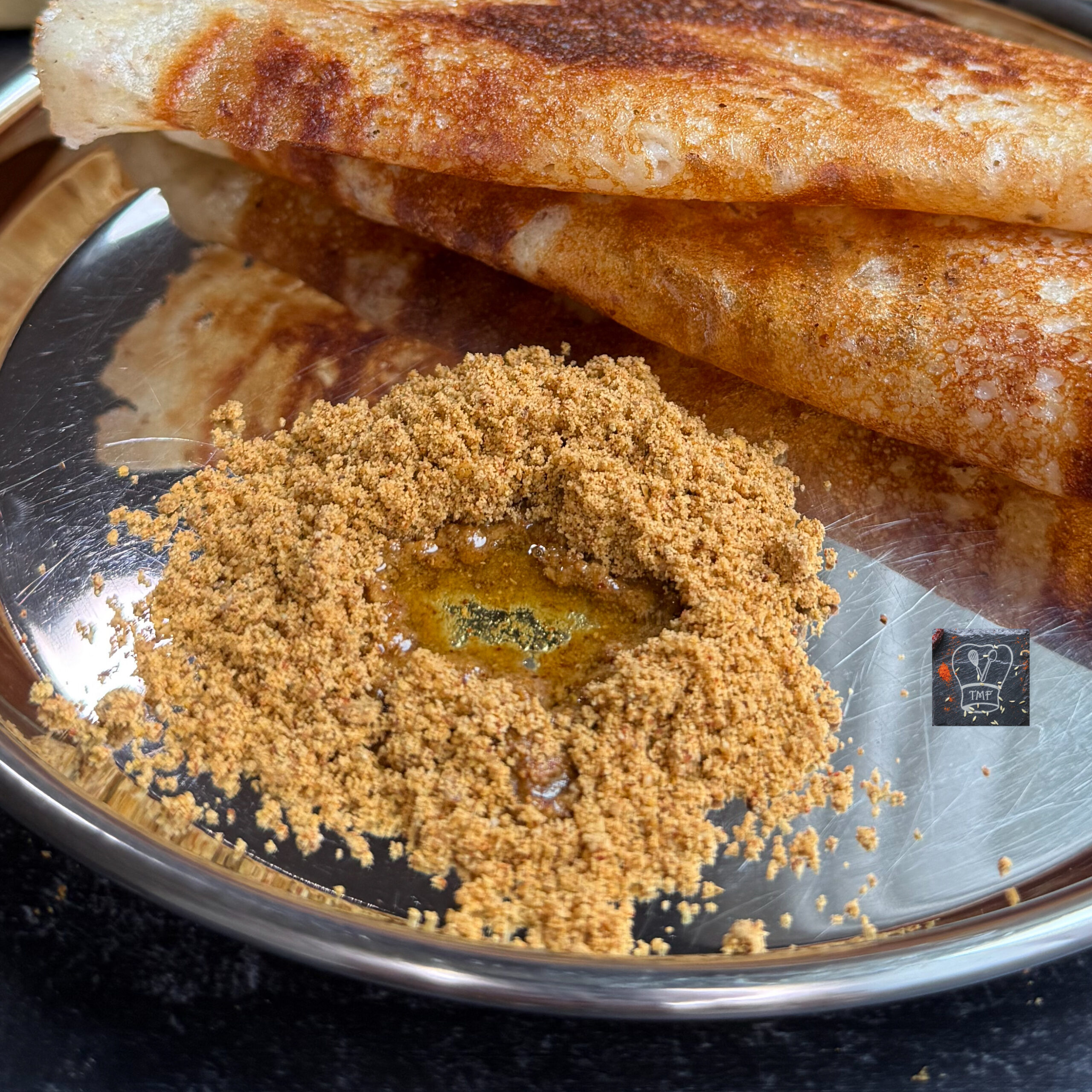 Idli, dosa, uttapam, curd rice, steamed rice with ghee, chapati, or even sprinkled on roasted veggies and salads.
