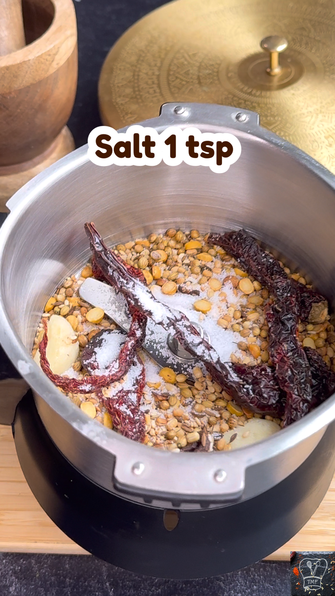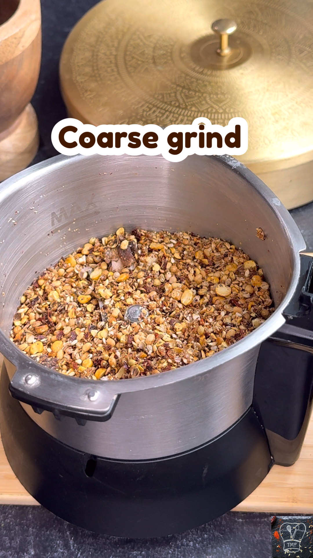 - Grind all roasted ingredients except pumpkin seeds into a coarse mixture with salt.