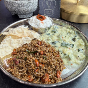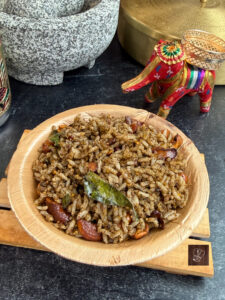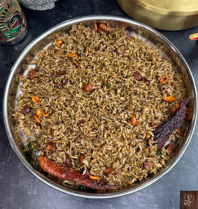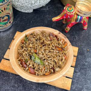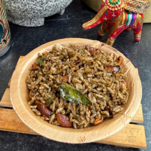 Ellu Sadam is a traditional South Indian sesame rice made with roasted sesame seeds, lentils, red chillies, and spices. It is commonly prepared in temples and during festivals.