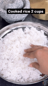 Short‑grain rice like ponni, sona masoori, or raw rice works best. The grains should be cooked, fluffy, and separate.