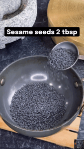 The recipe uses simple, sattvic ingredients like sesame seeds, urad dal, and mild spices — all commonly used in temple prasadam preparations.