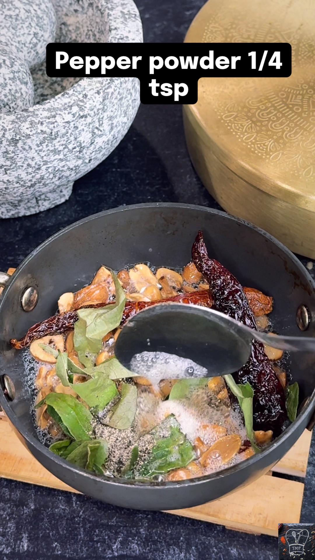 - ️Furthermore, add curry leaves, asafoetida, and pepper powder, and mix well