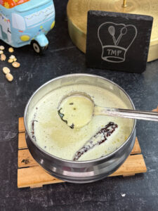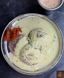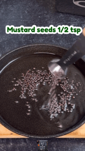 - Heat the coconut oil for tempering. Add mustard seeds and let them splutter