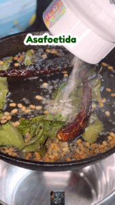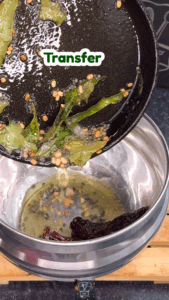 - Add urad dal, red chilli, curry leaves, and asafoetida. Fry till golden