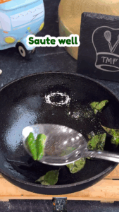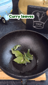 - Heat oil in a pan. Add curry leaves and green chillies, and sauté till they change color