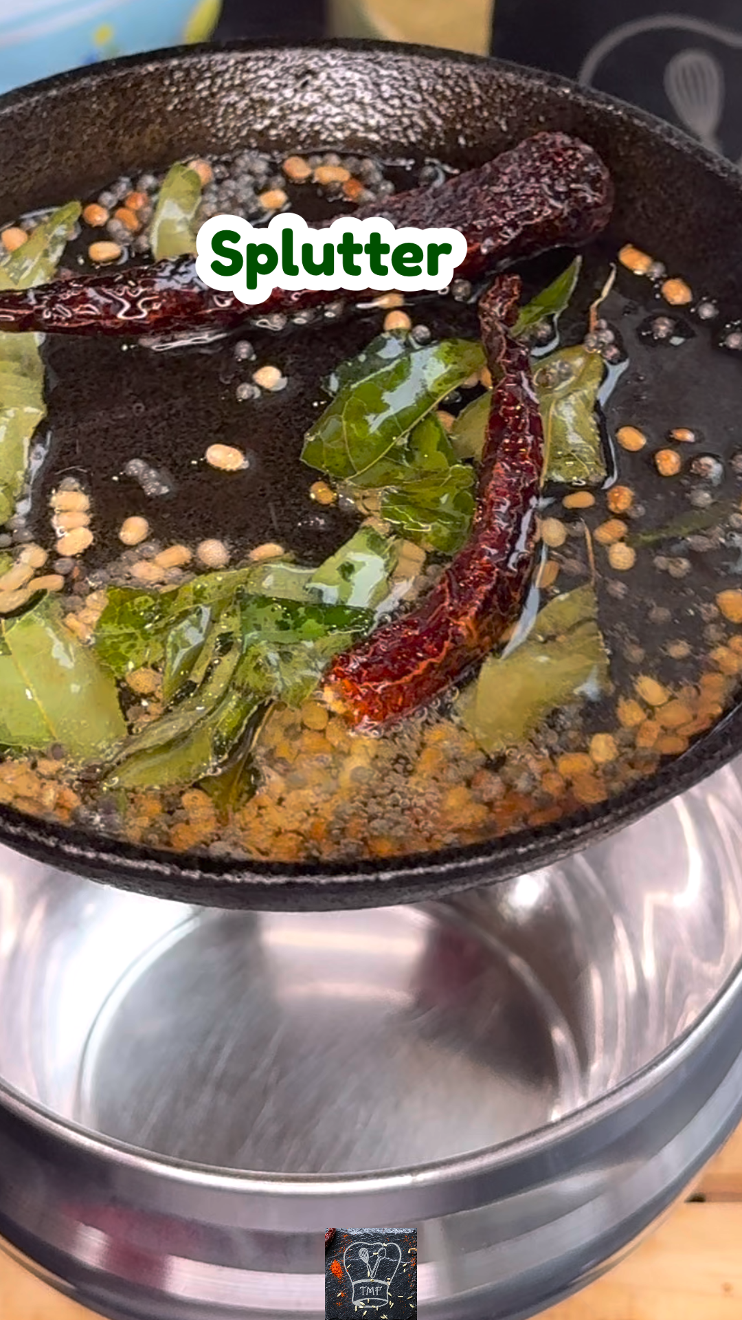 - Heat the coconut oil for tempering. Add mustard seeds and let them splutter
