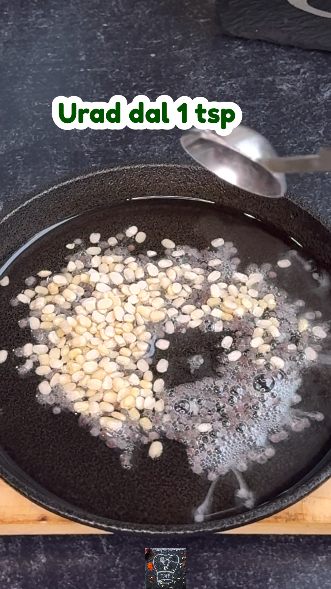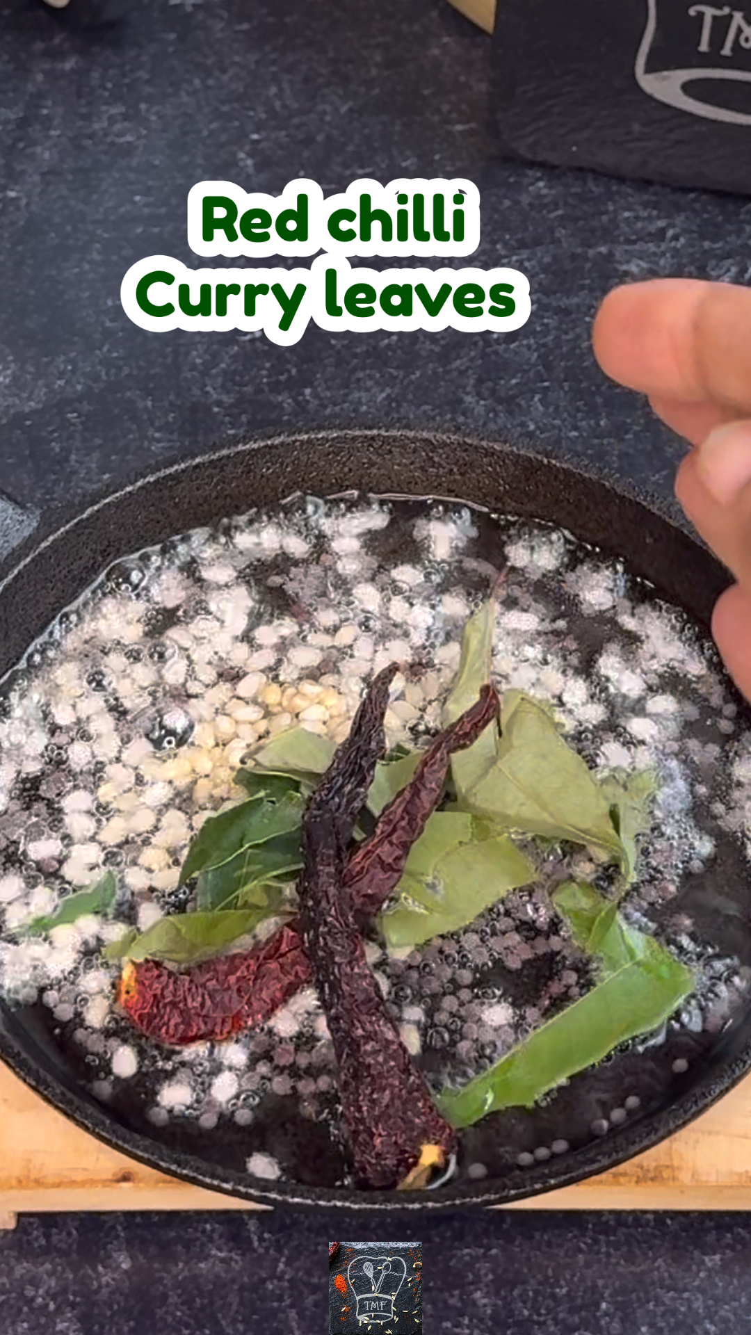 - Add urad dal, red chilli, curry leaves, and asafoetida. Fry till golden