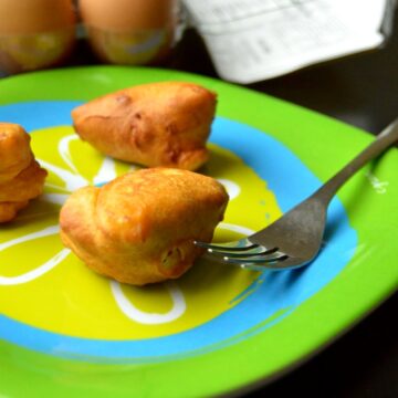 Carefully remove the excess batter from egg and add immediately to hot oil.
